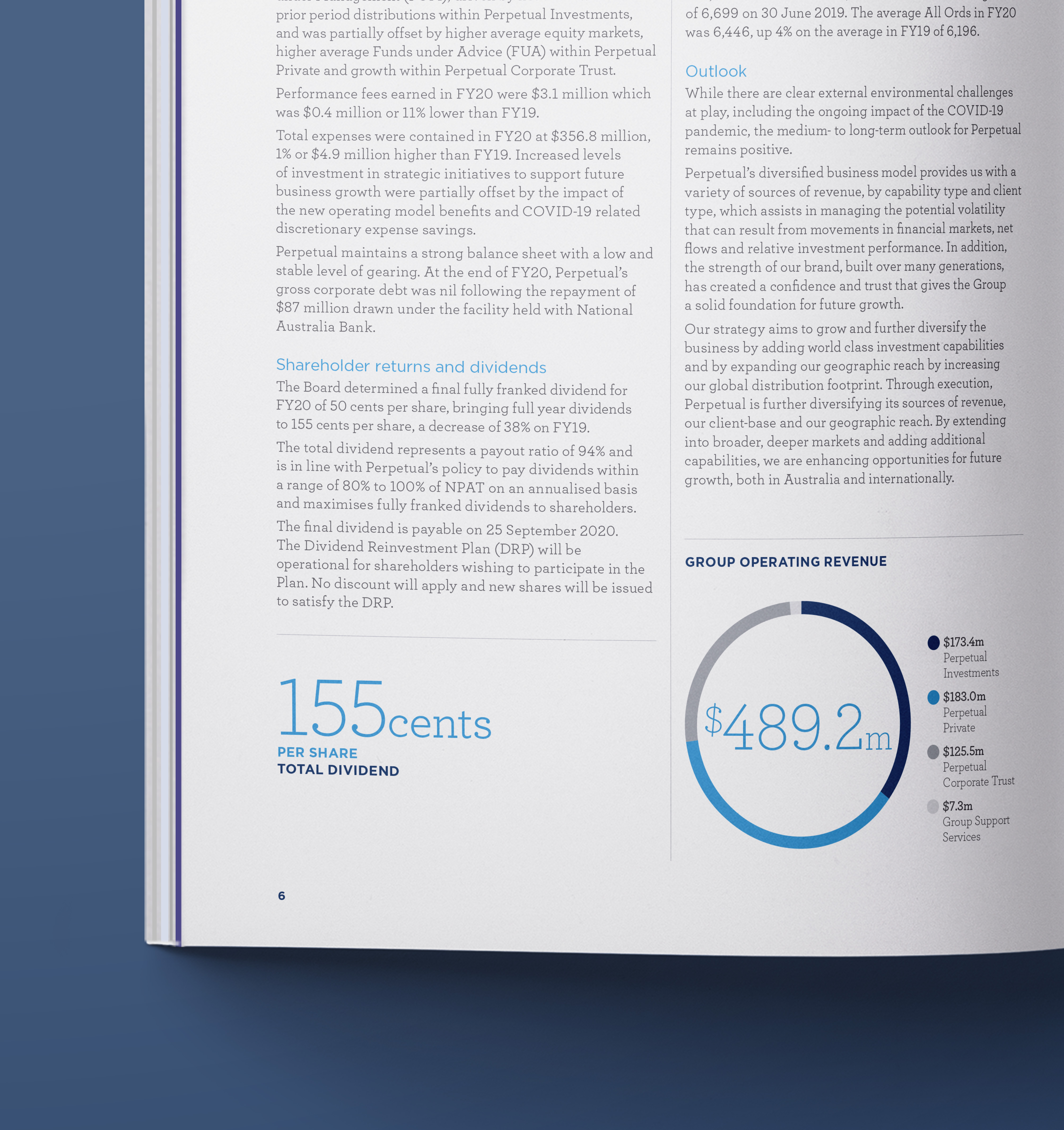 Amidst a challenging environment Perpetual needed to provide transparency for their stakeholders on the short to mid-term economic impacts of COVID-19, whilst providing reassurance for the longer term prospects of their investments. To that end we needed to create focus on a compelling narrative that integrated their intensifying focus on ESG, with a track record of sustained value creation for their stakeholders.