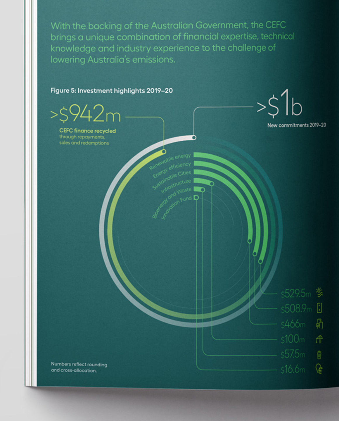 The refreshed brand positions the CEFC at the centre of innovation. Visually, it is a significant departure from the original, understated brand. It was time to take ownership of the organisation’s mission and successful track record and to make these an integral part of the brand’s story, essential to establishing credibility in this sector.
