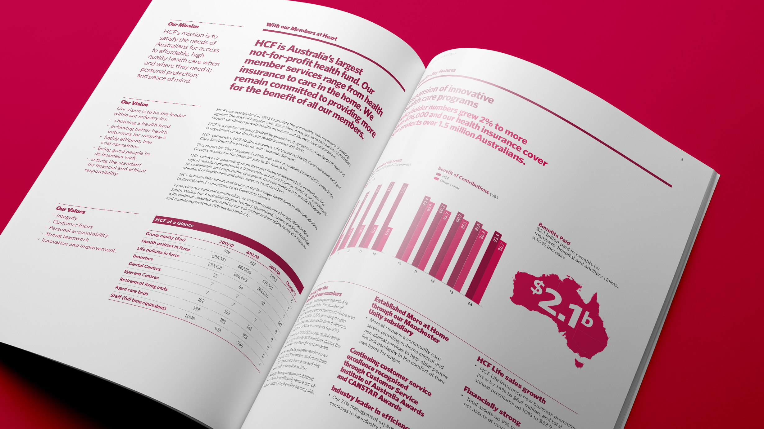 Designate completely redesigned the HCF brand to represent the idea of 'members at heart' and introduced a brighter more contemporary colour palette, allowing for more confident and engaging visual expression.