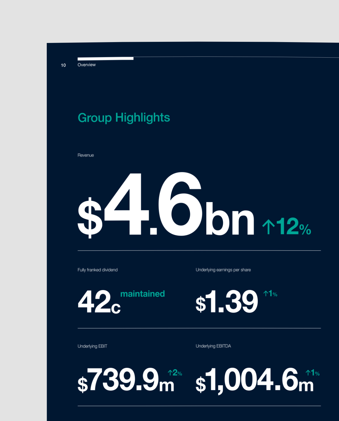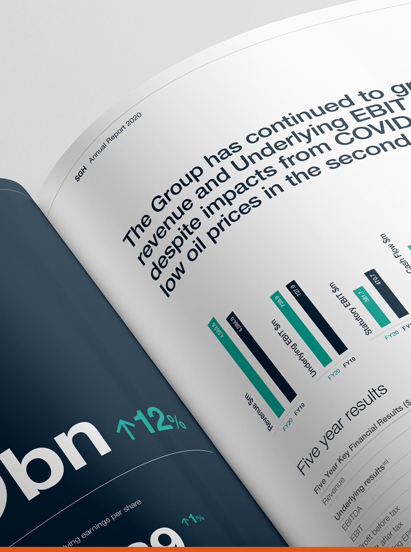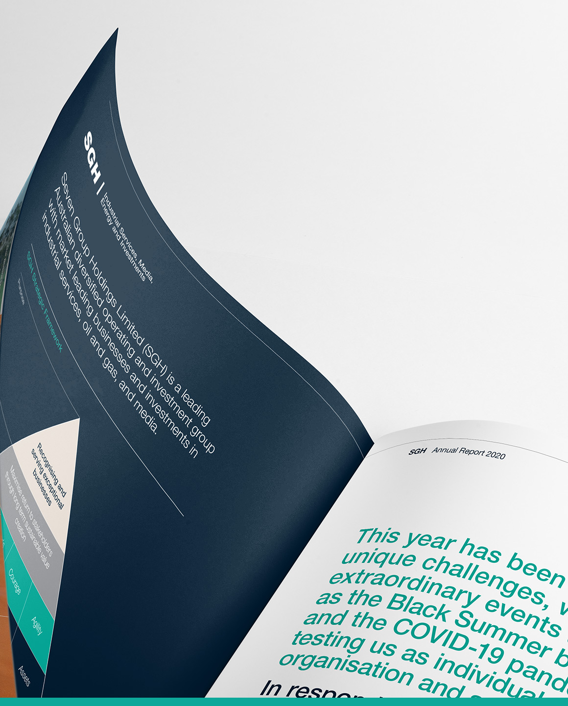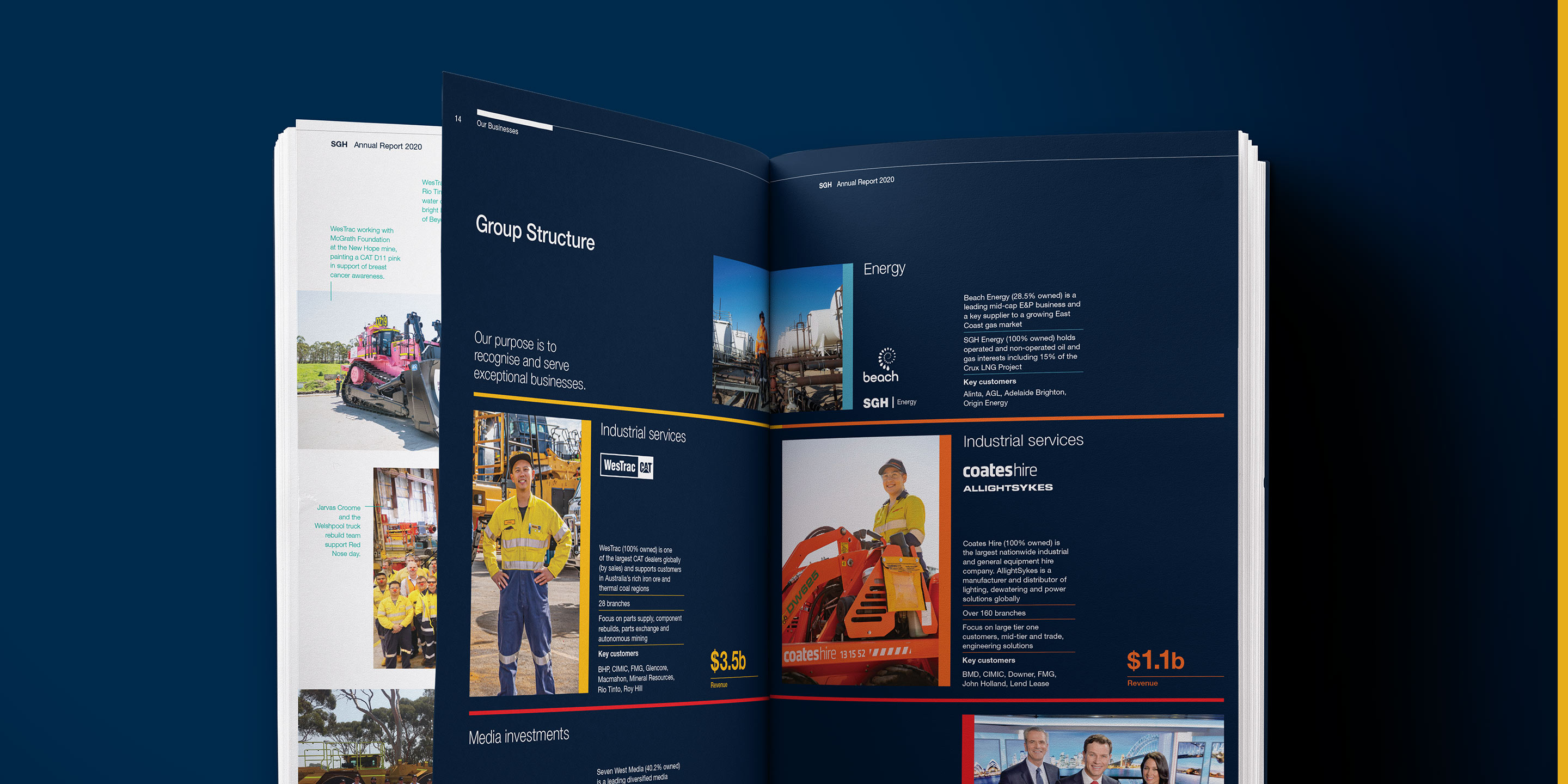 Made up of diverse yet complementary holdings the design challenge is to communicate the depth and breadth of the entity. This has been done not only in the design of the content but also in the physical form of the report.